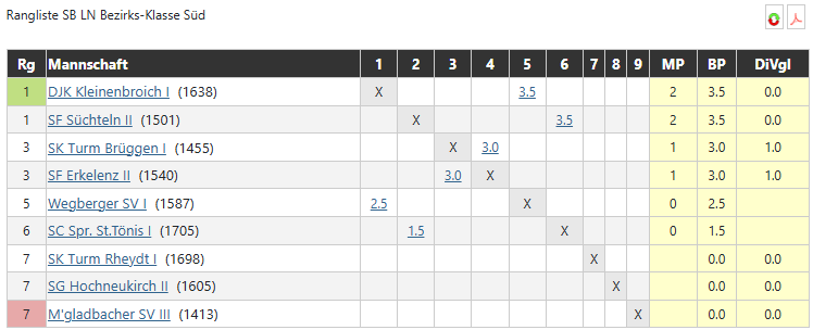 Bezirks-Klasse Süd – aktuelle Tabelle