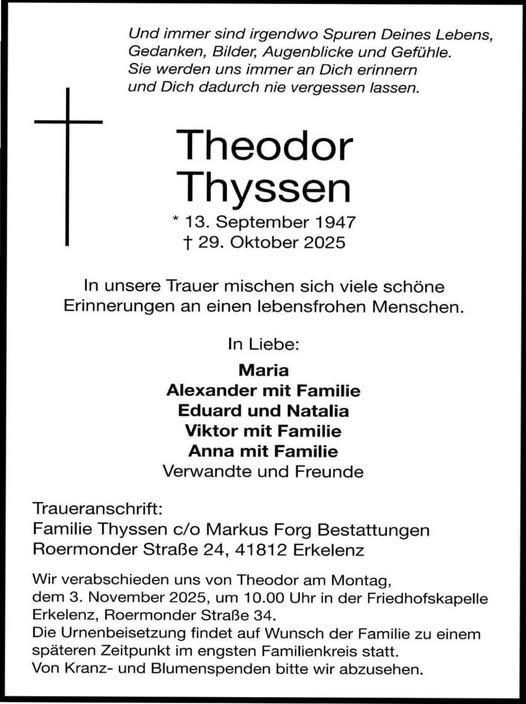 Die Schachfreunde Erkelenz nehmen Abschied von ihrem langjährigen Mitglied Theodor Thyssen, der am 29. Oktober 2025 verstorben ist.